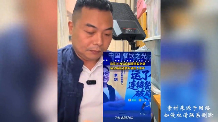 信良记的老板又公开发表言论了,在一个叫做中国餐饮之光大会的论坛上隔空喊话罗永浩,先看看他是怎么说的。