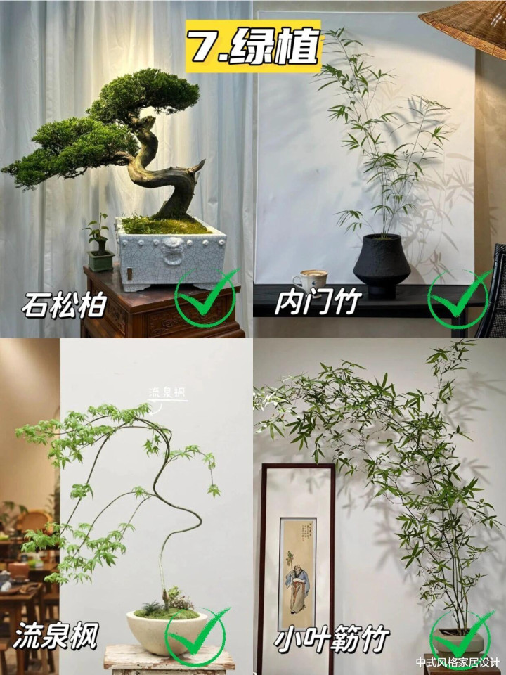 七、绿植:装文竹/罗汉松盆景,不装发财树