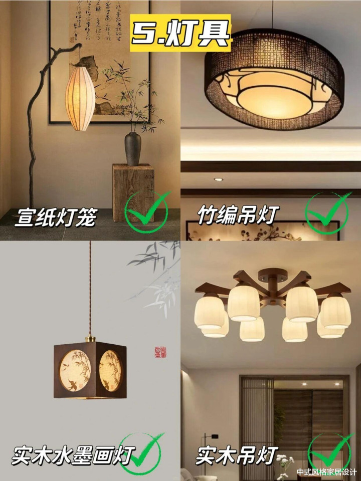 灯光是新中式空间的“眼神”。宣纸灯笼、竹编球形吊灯、陶瓷吸顶灯都是上佳之选。它们材质自然,光线透过时变得柔和、匀散,宛如朦胧月色,顷刻间便能营造出“烛影摇红”的宋画意境。璀璨华丽的水晶吊灯固然贵气,但其光芒四射、棱角分明的特质,与新中式追求的含蓄、清雅背道而驰,搭配不当易显俗气。