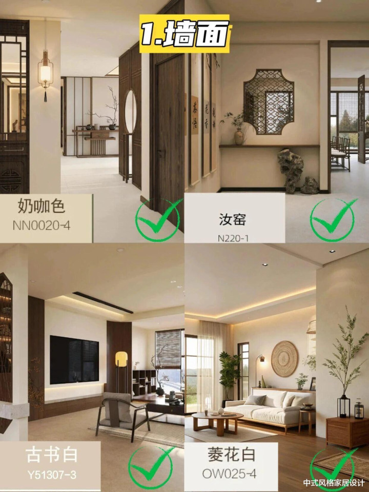 墙面宜作“留白”与“点缀”的艺术。以米灰、浅咖等素雅的艺术漆或肌理漆打底,营造宁静包容的背景。局部搭配胡桃木、柚木等材质的垂直格栅,不仅能增加墙面的层次与韵律,木质的温润也瞬间点亮空间。一定要避开色彩浓艳、雕工繁复的电视背景墙,那种急于展示的堆砌,极易沦落为“中式KTV”的浮夸现场,失了风骨。